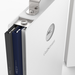 The Gulfstream was presented with two new catalog containers. First option features a minimalist style with a single die cut window to show the plane on the front cover. It features a solid metal handle, thick leather stap with snap button, soft touch lamination, and branded pms colors. Second concept focuses more on the luxury, brand and structural engineering. It features foil stamping, soft touch lamination, pms grey with intricate logo pattern, and gate fold spread.